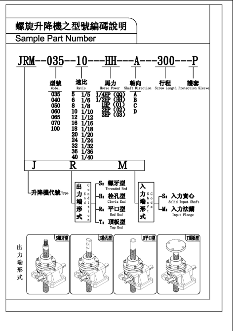 三:臺灣成大(CHENTA減速機之螺旋升降機的組成部分如下