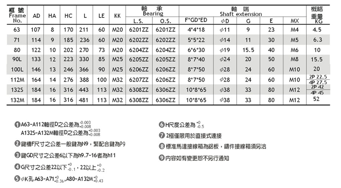 永元鋁殼臥式三相馬達特點:1采用E級絕緣及高級導電材料,溫升低,壽命長,性能優越 2外型輕巧,堅固耐用3優越的設計,噪音低,運轉安靜 4 啟動轉矩大,慣性小,運轉順暢,省電效果較佳,馬達強勁有力。5特性合乎國家CNS及各項國際認證等標準。6標準IEC公制尺寸,具有互換性,適合各界需要