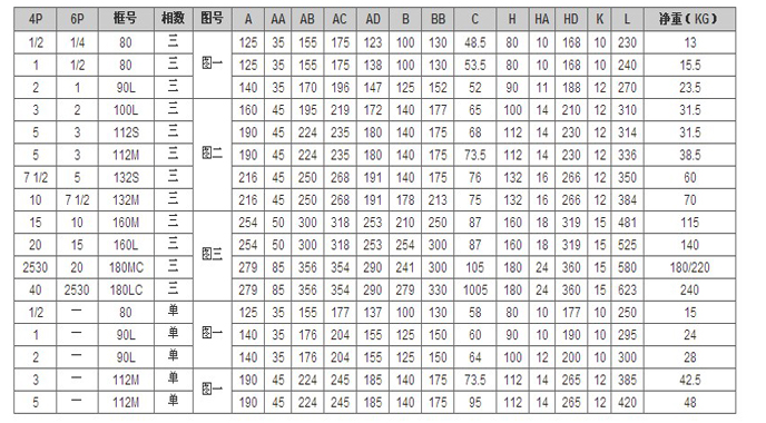 額定功率:1/2HP-20HP