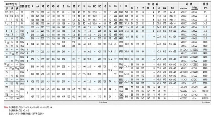 轉速/極數:2級,4級,6級,8級