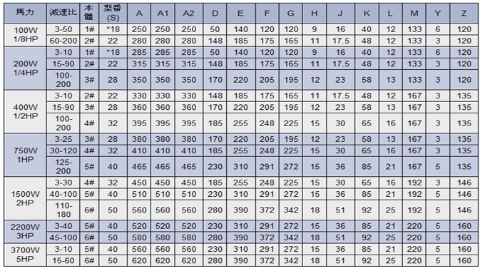 城邦二代立式(標準/縮框)三相齒輪減速馬達詳細參數: